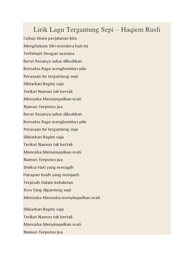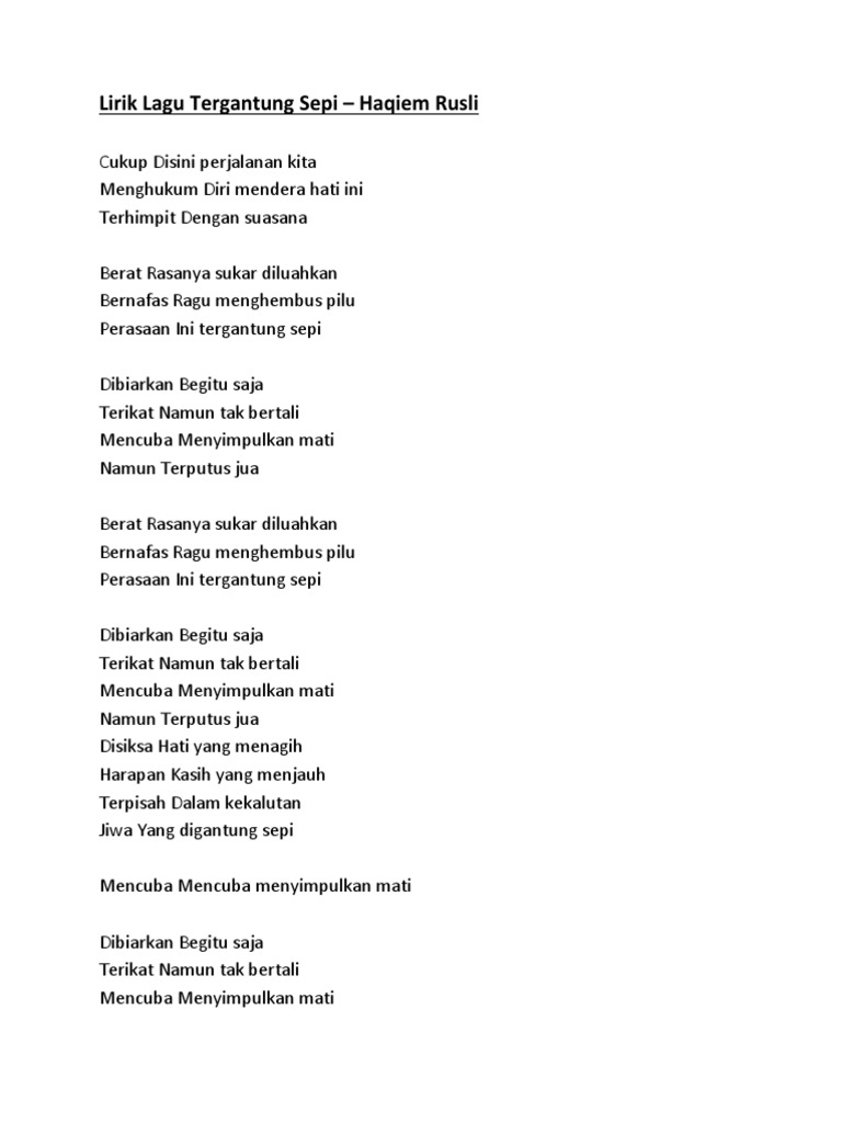 Lirik Lagu Tergantung Sepi Pdf